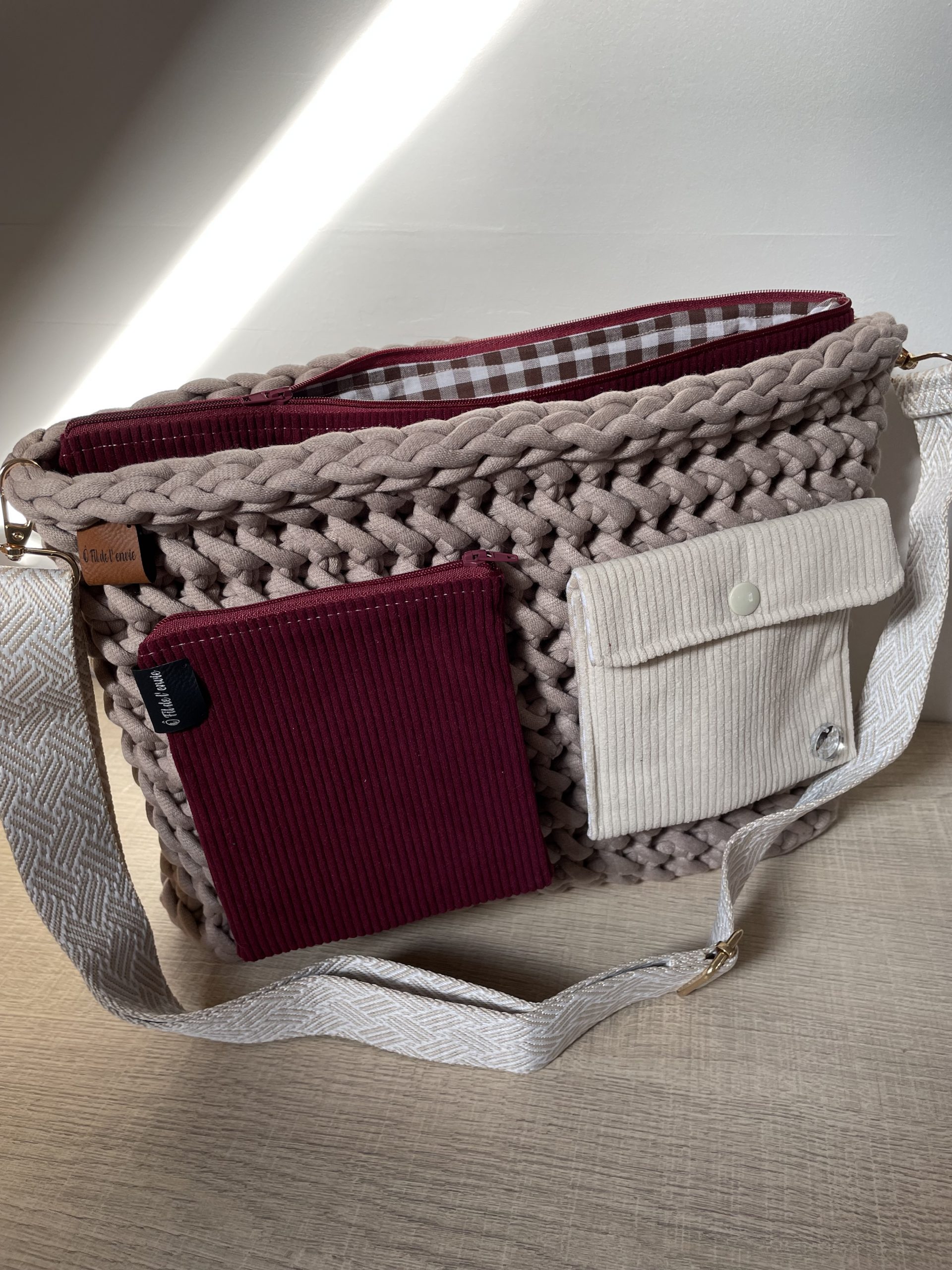 Découvrez notre sac à main Chléo, une pièce unique réalisée à la main au crochet avec un fil de qualité supérieure, lavable en machine pour un entretien facile. Son design élégant allie praticité et style, grâce à son organiseur de sac en velours doublé vichy qui permet de garder toutes vos affaires parfaitement organisées.